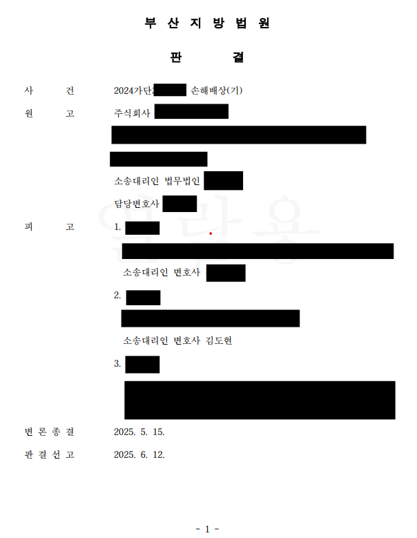 부산지방법원은 2025년 6월 12일 선고된 판결에서, 프리랜서 계약을 한 당사자에 대하여는 청구를 인용하고, 지게차 운전자, 지게차 임대인에 대한 원고의 청구는 모두 기각하였습니다.